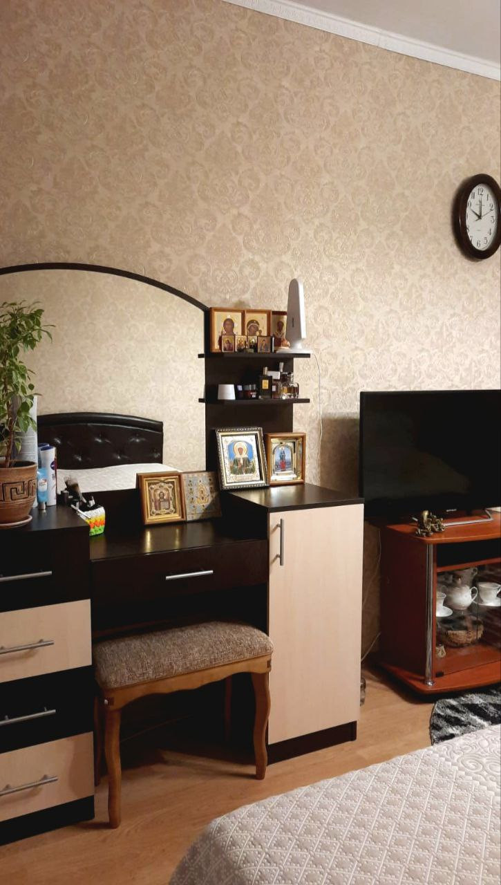 Комната в хорошем жилом состоянии - 4 года назад был сделан косметический ремонт. С/у раздельный, балкон застеклён. Комната продаётся с мебелью. В прихожей стоит отдельный шкаф для верхней одежды, а на кухне отдельный кухонный гарнитур.