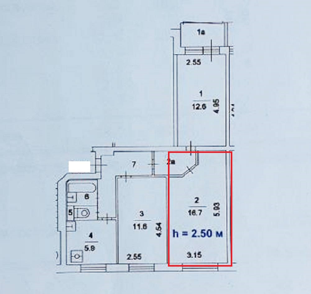 Высота потолков 2.5 м