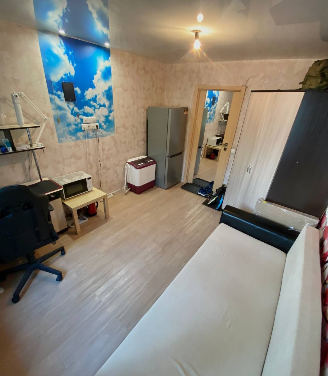 В комнате выполнен свежий евроремонт, установлен натяжной потолок, заменены розетки и освещение, проведён Wi-Fi. Имеется вся необходимая мебель для комфортного проживания.