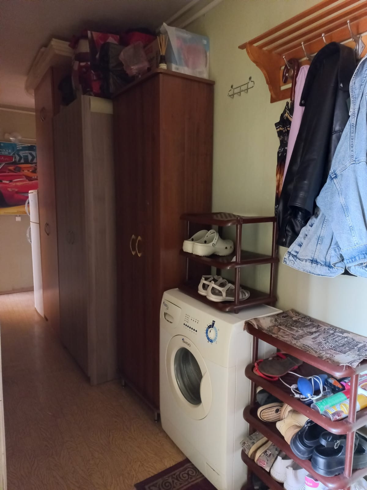 Остаётся вся мебель, на кухне: стенка, холодильник и стиральная машинка. В коридоре шкаф. В комнате, вся мебель кроме телевизора. Заехал и живи.