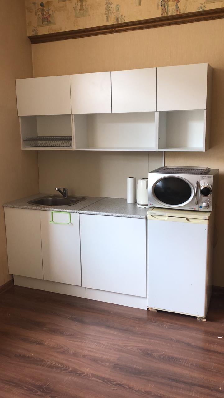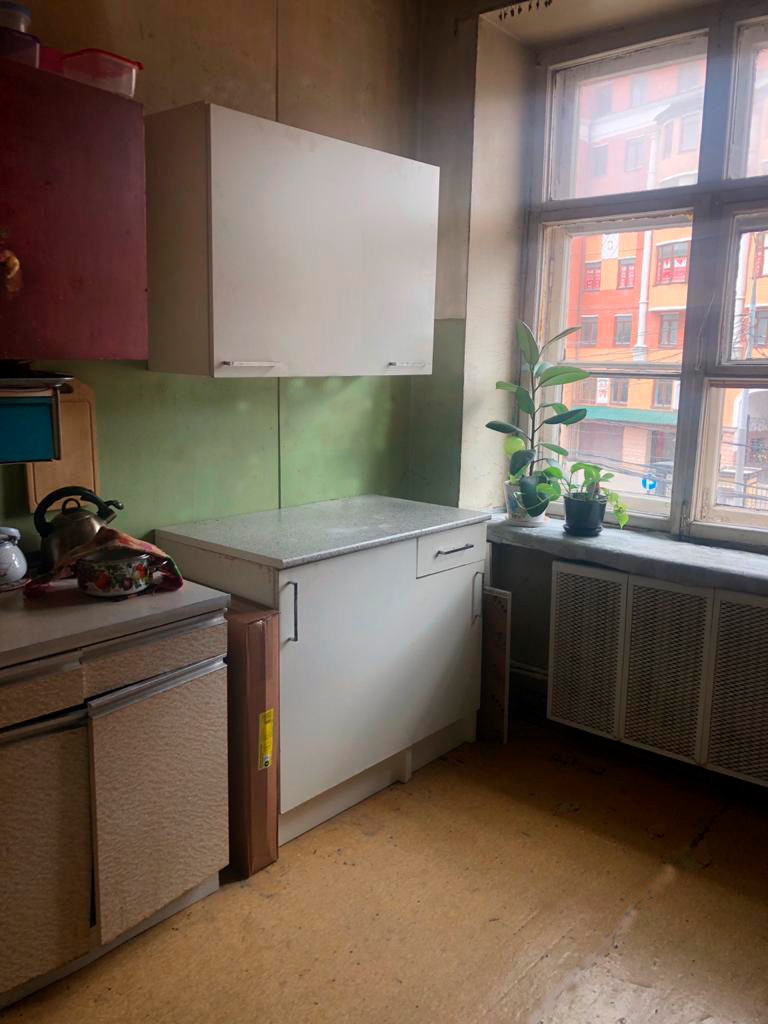 Комната с ремонтом. Имеется оборудованная кухонная зона непосредственно в комнате, что создает возможность организовать полноценную мини-студию. На общей площади в квартире также оборудована кухонная зона и места для хранения.