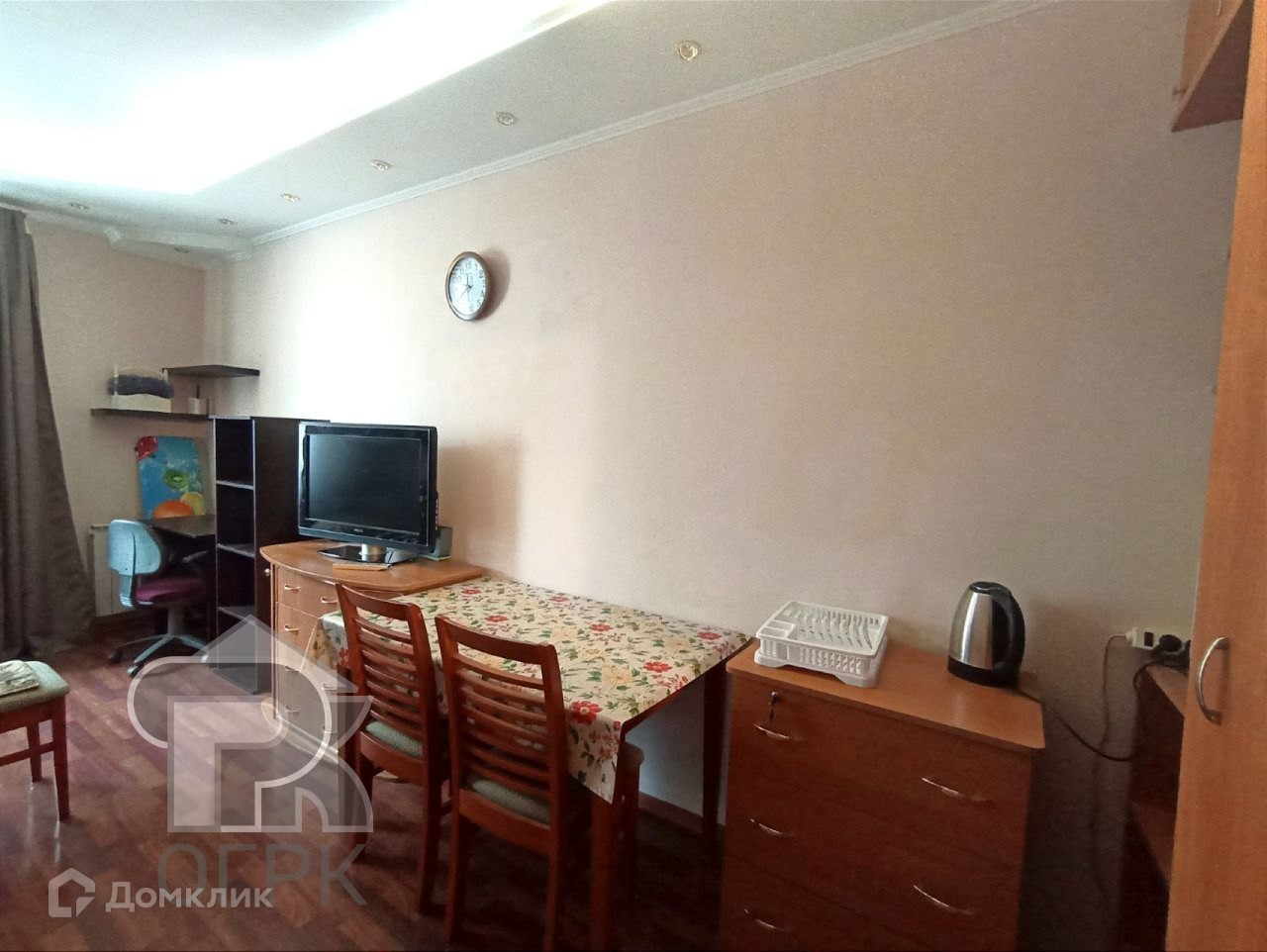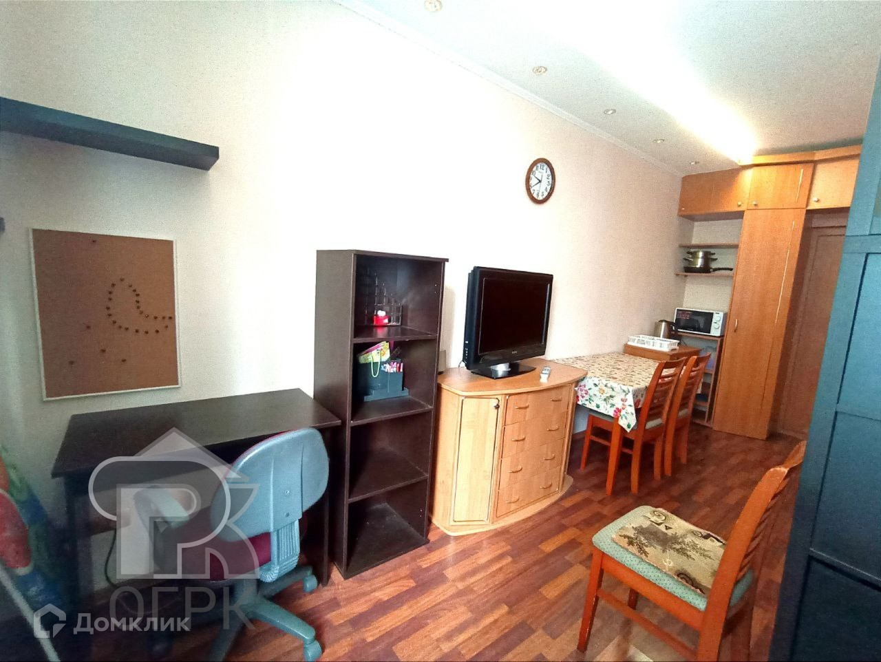 В комнате сделан ремонт из качественных материалов: на полу ламинат, стены покрашены. Вся мебель и техника в комнате, а также стиральная машина и холодильник на кухне остаются новым владельцам. Проведен интернет.