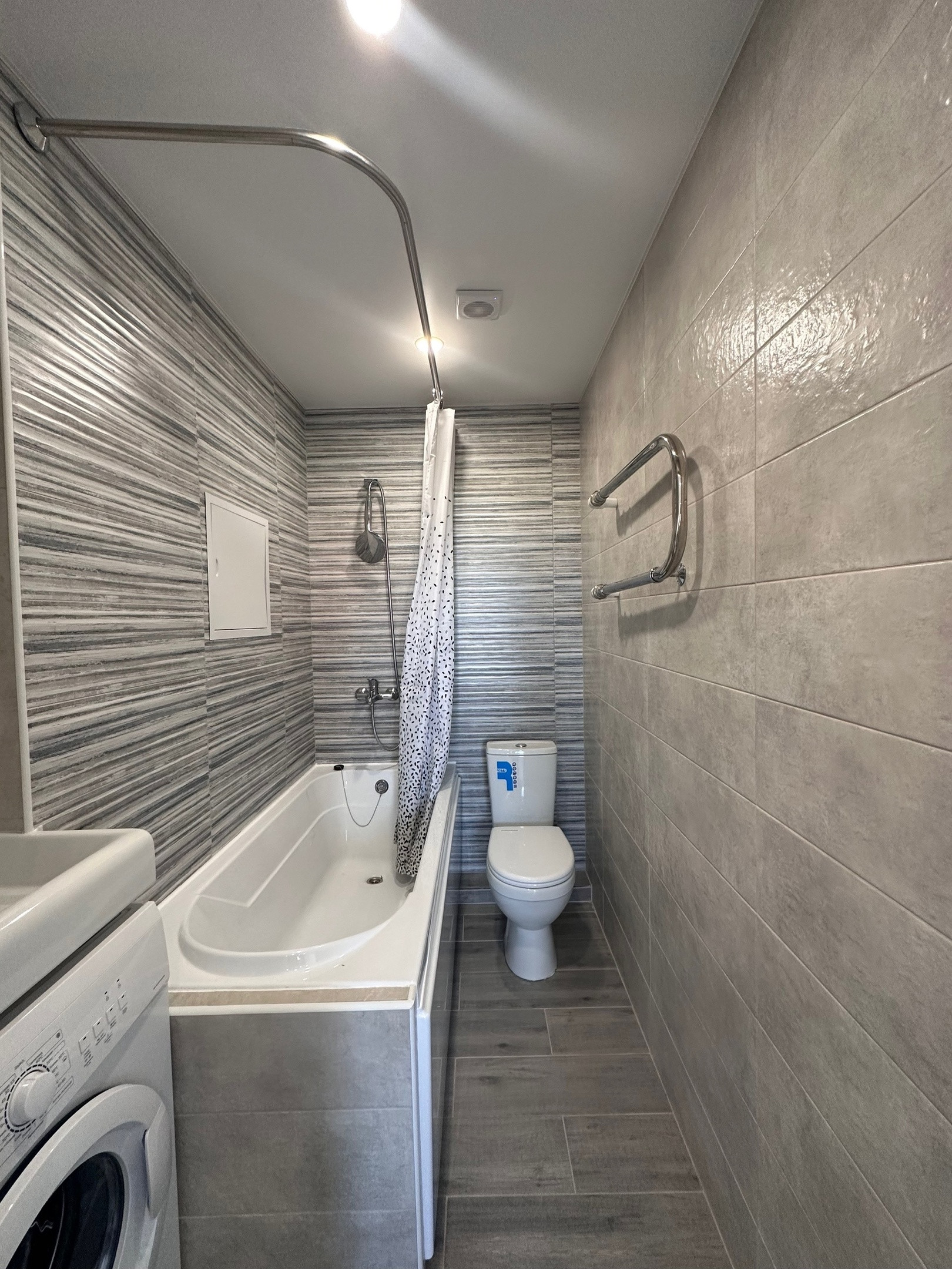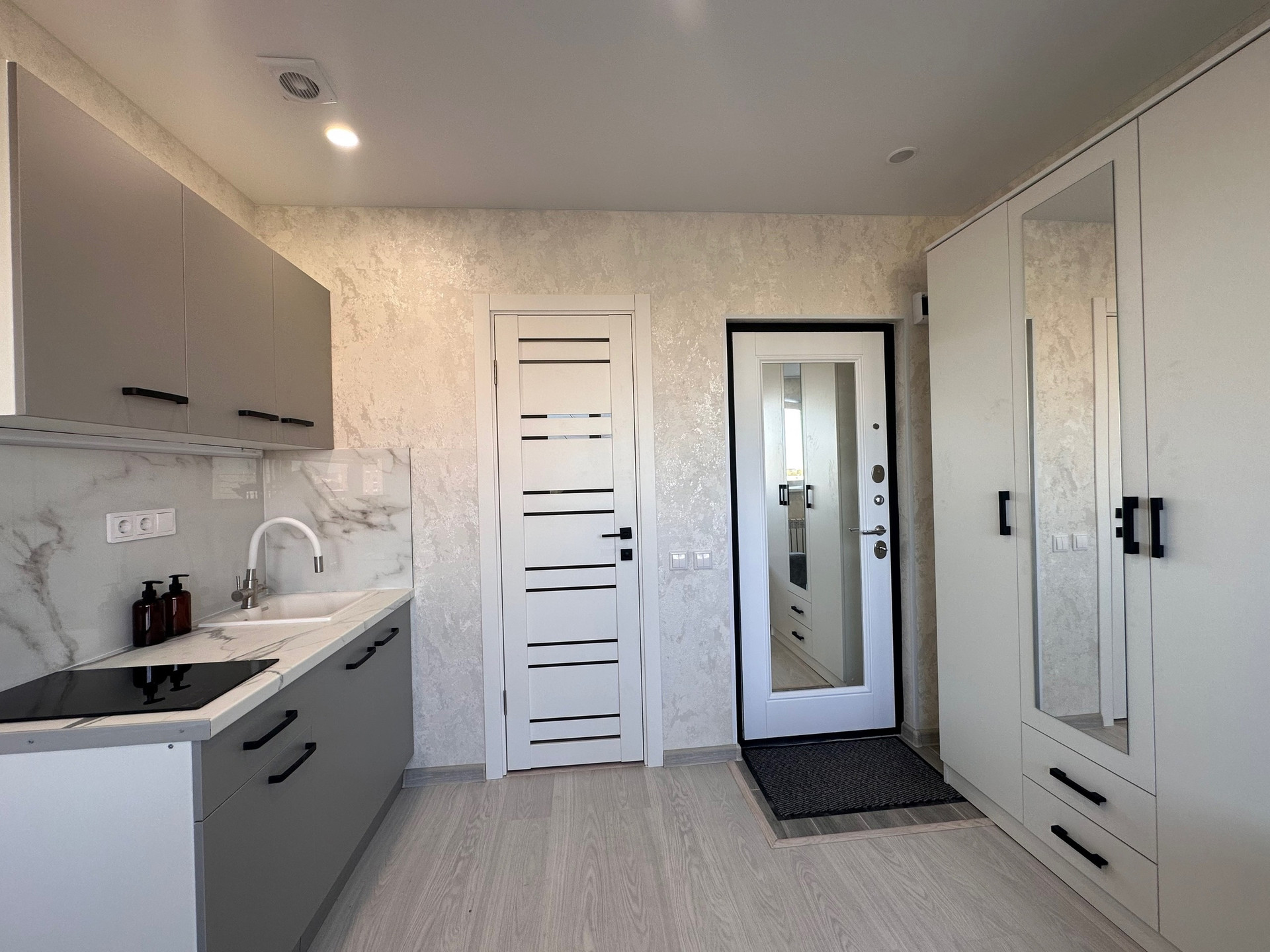 В квартире выполнен качественный ремонт из дорогих строительных материалов, на полу ламинат, окна пластиковые, батареи – биметалл, надёжная входная дверь, качественная межкомнатная дверь, сантехника надёжной фирмы на гарантии, современный кафель, новая проводка.