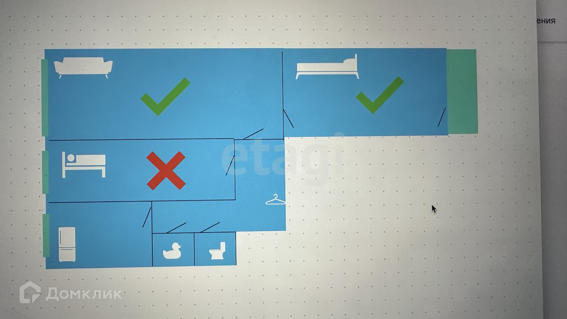 Общая площадь 33.5 м2