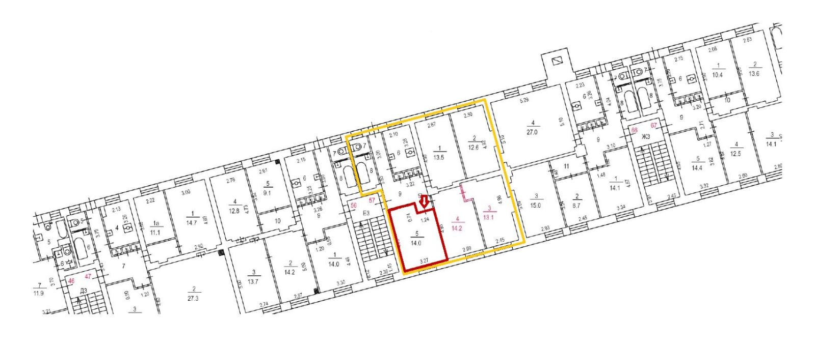 Жилая площадь 67.4 м2