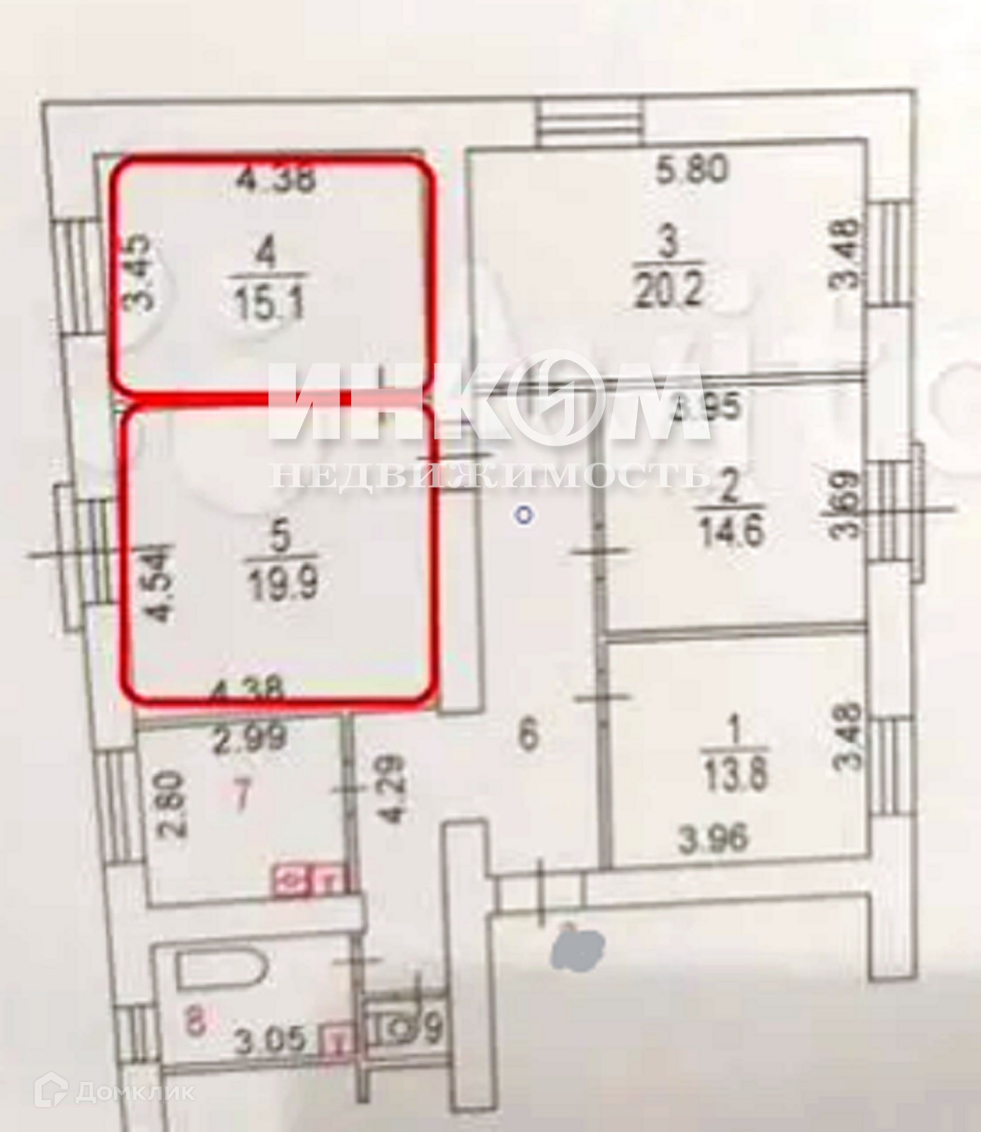 Площадь комнат