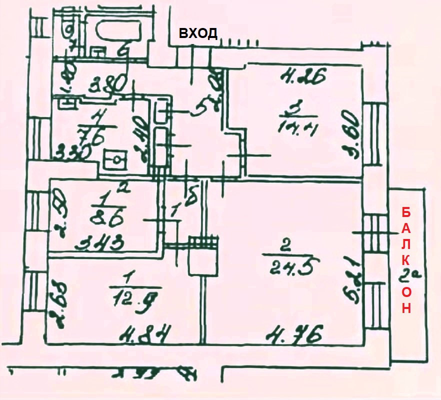 Жилая площадь 63.2 м2