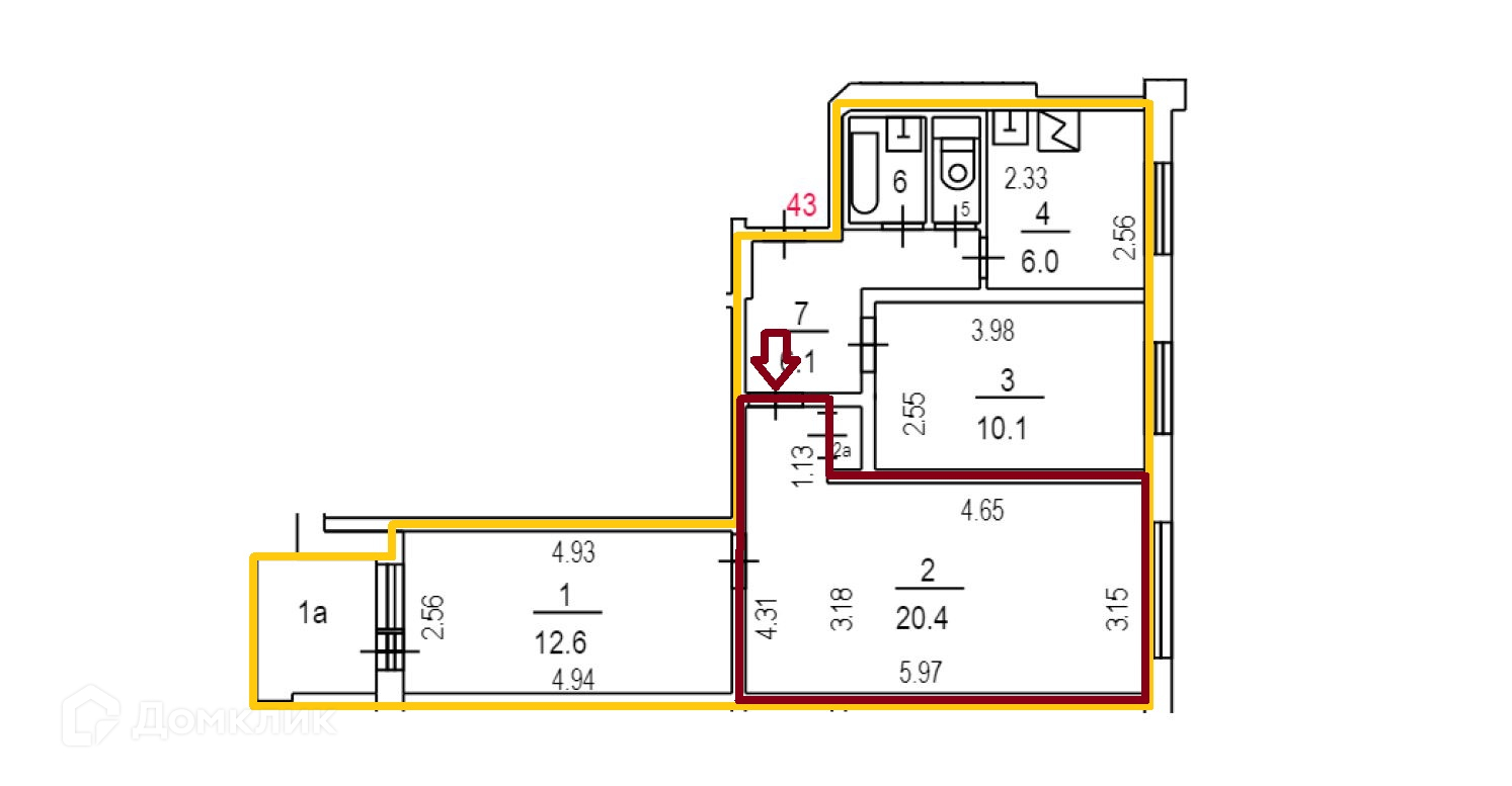 Общая площадь 20.4 м2