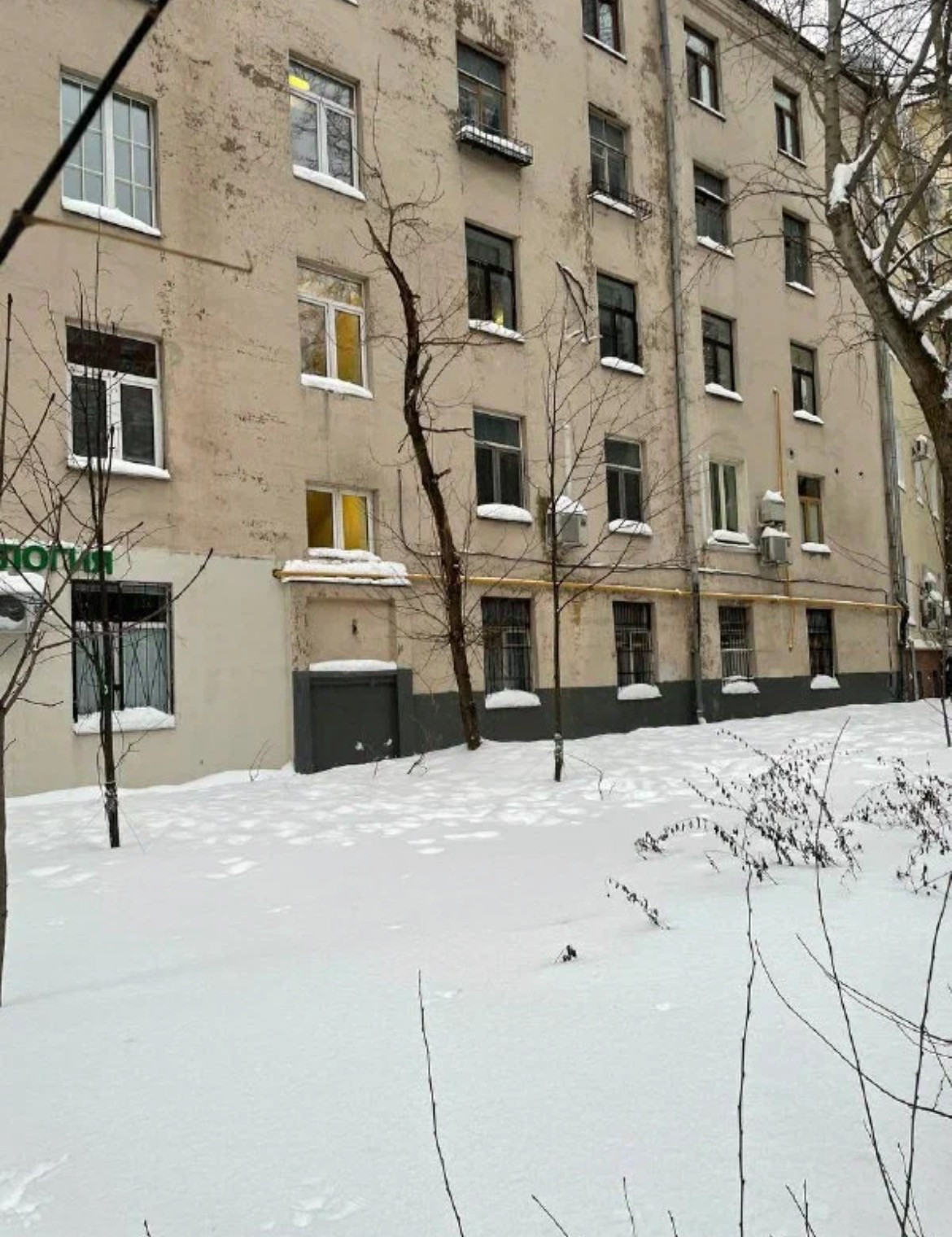 Высокие потолки. Окна выходят во двор. Квартира требует ремонта.
