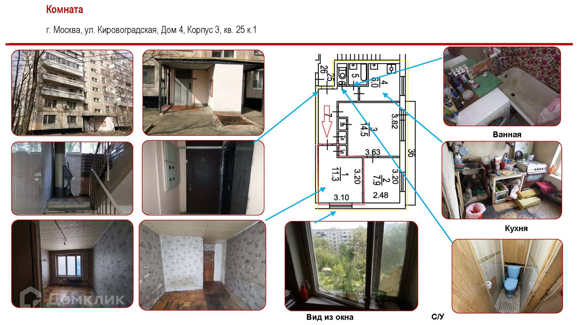Комната, 11.3 м2, на продажу в Москве, Кировоградская улица, 4к3