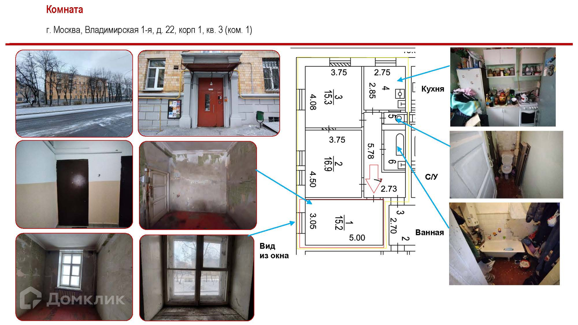 Комната, 15.2 м2, на продажу в Москве, Большая Косинская улица, 23