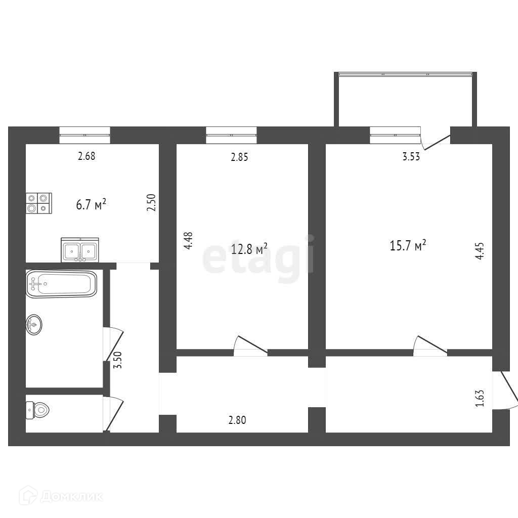 Общая площадь 57 м2