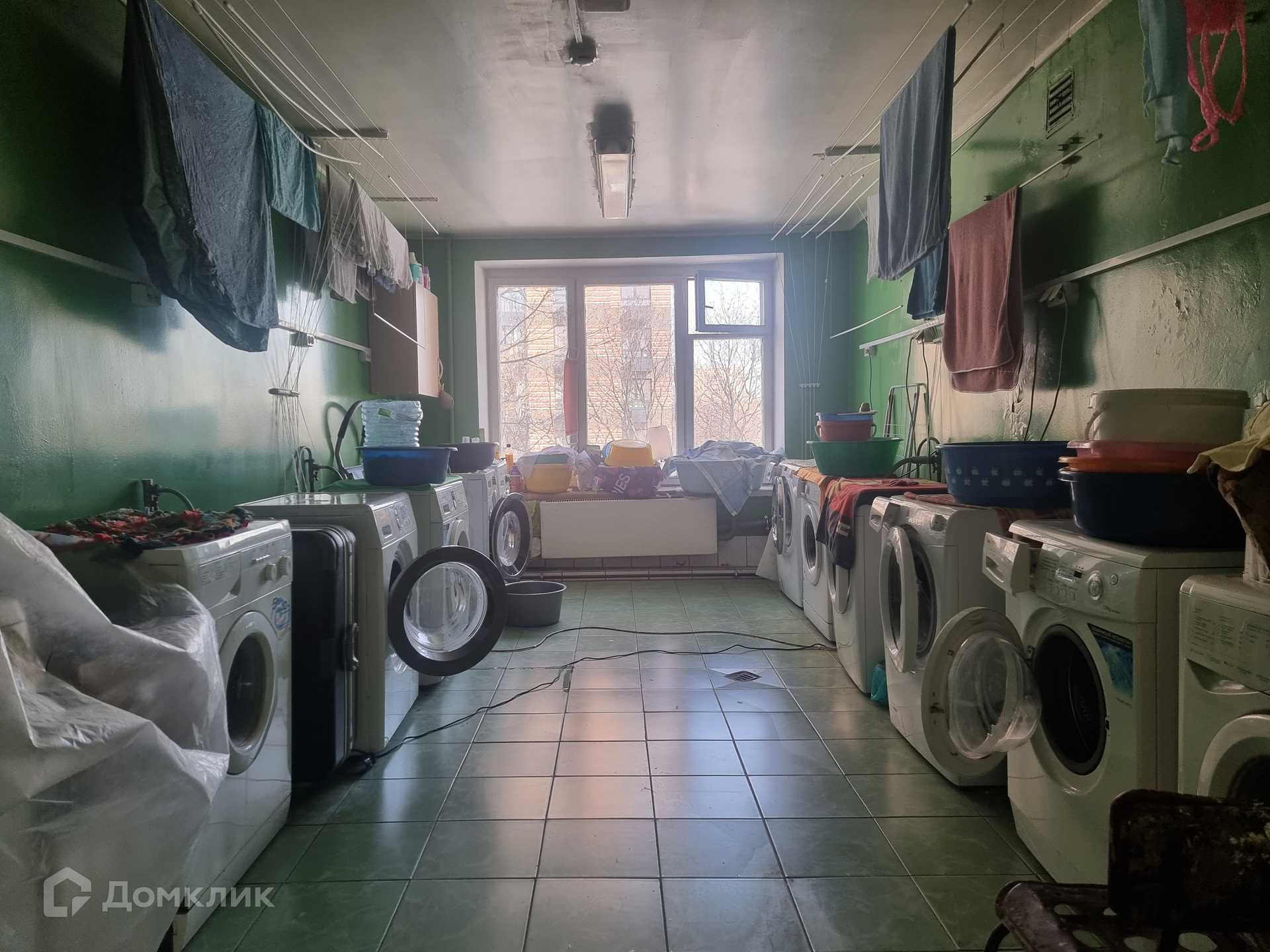 Сделан косметический ремонт. На этаже находятся 4 кухни, душевые, постирочные и туалеты.