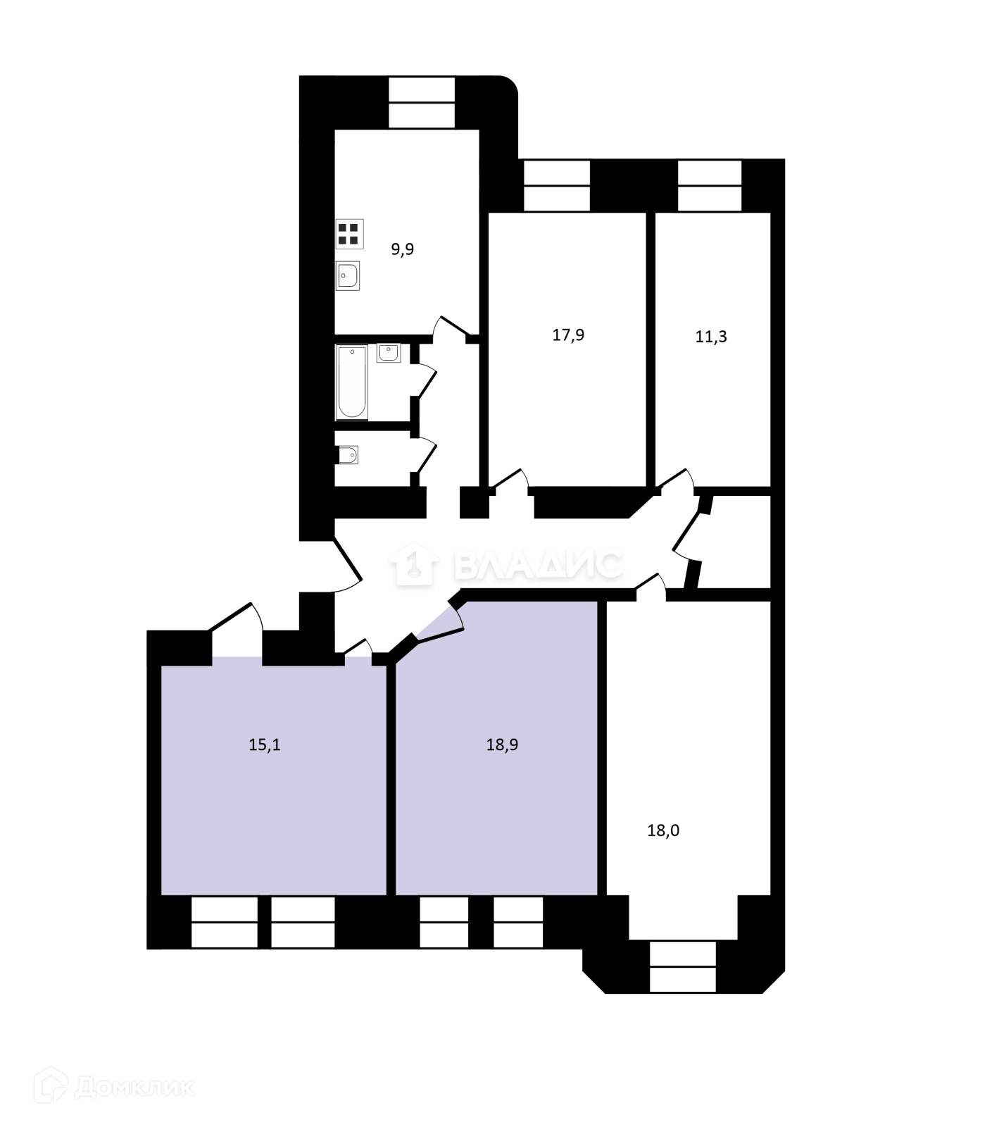 2. 18,9 м и 15,1 кв м