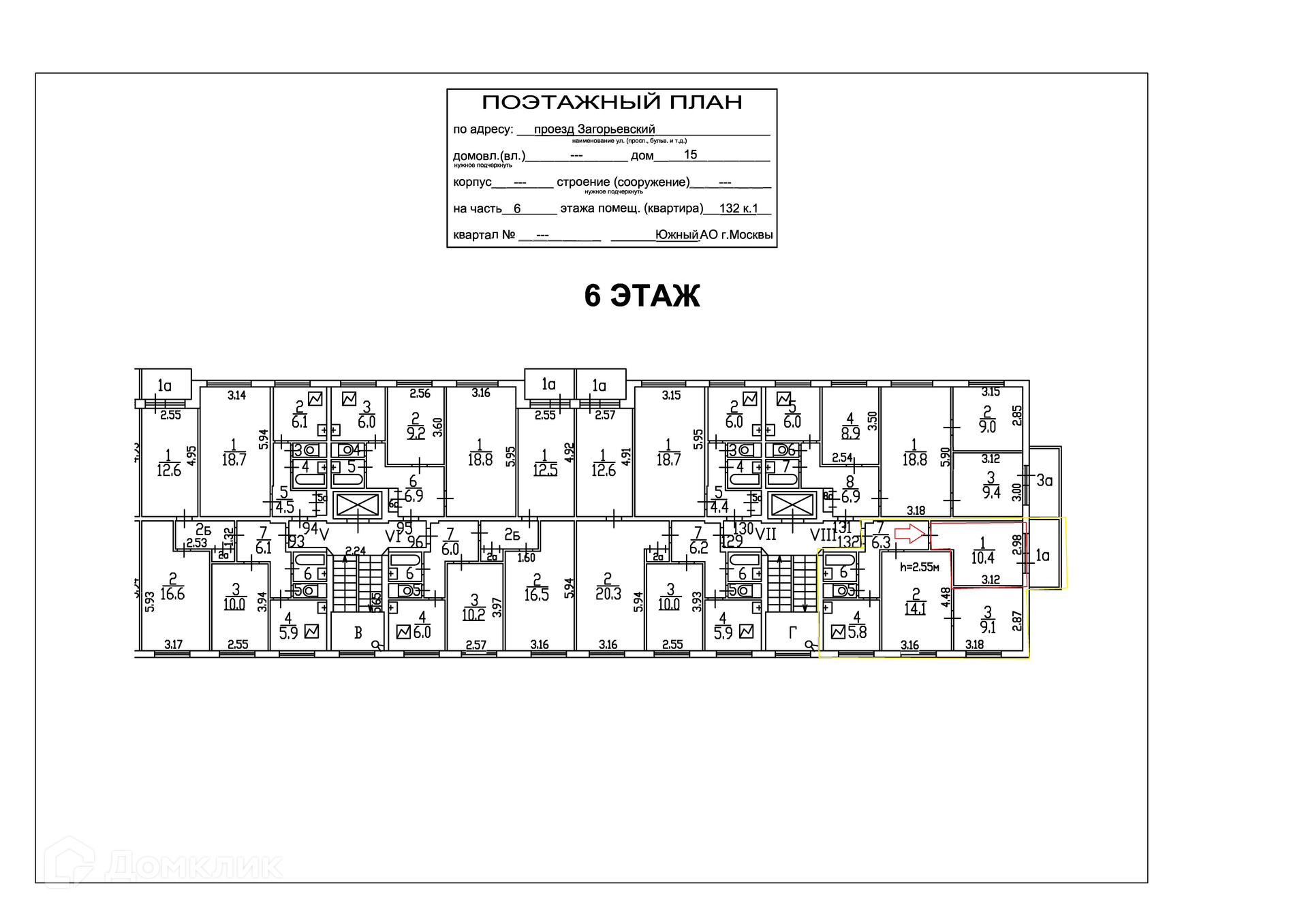 Общая площадь 10.4 м2