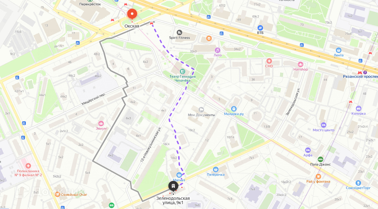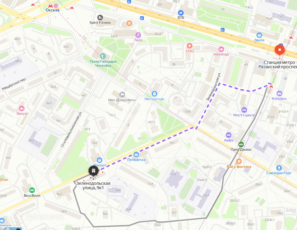 Вся инфраструктура района в пешей доступности. До метро Рязанский проспект 8 мин пешком. Так же рядом м. Окская.