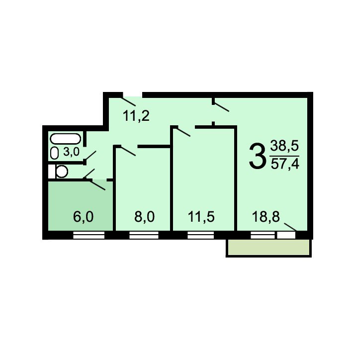 Общая площадь 58.1 м2