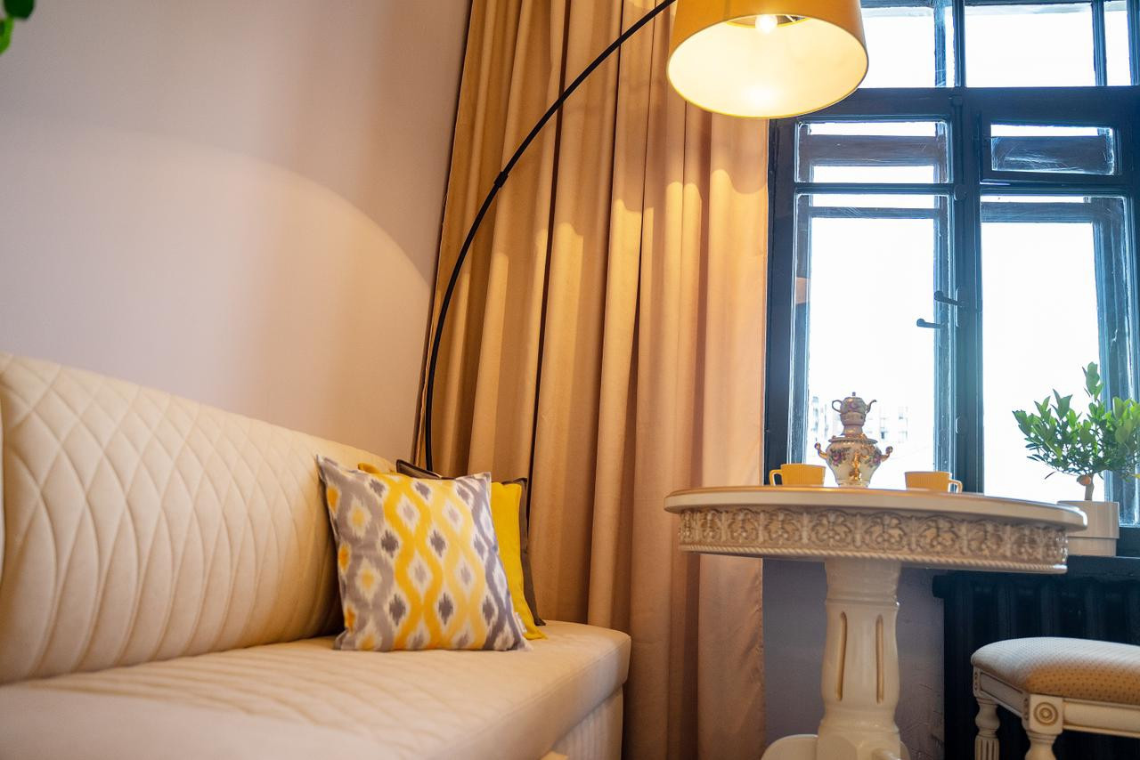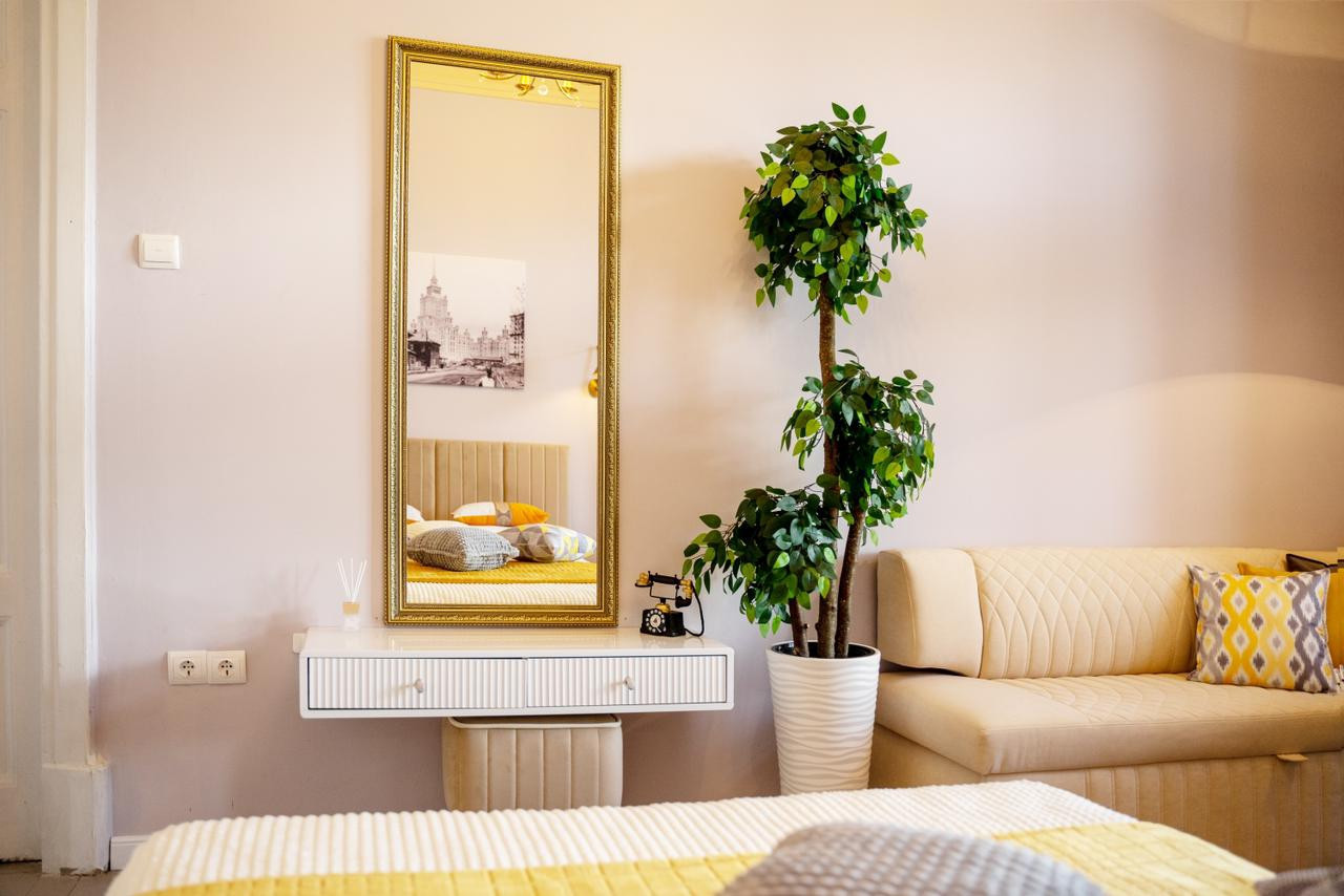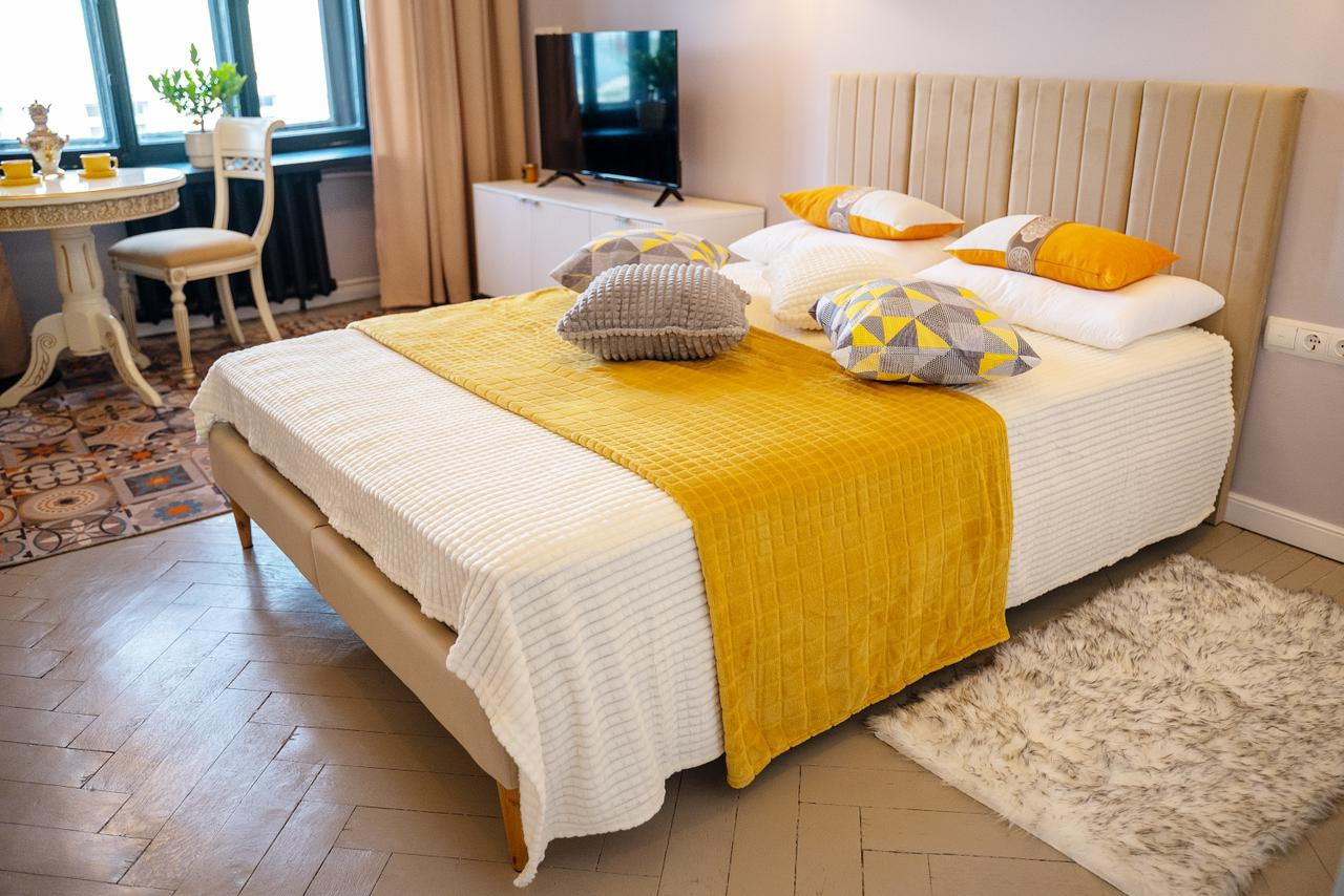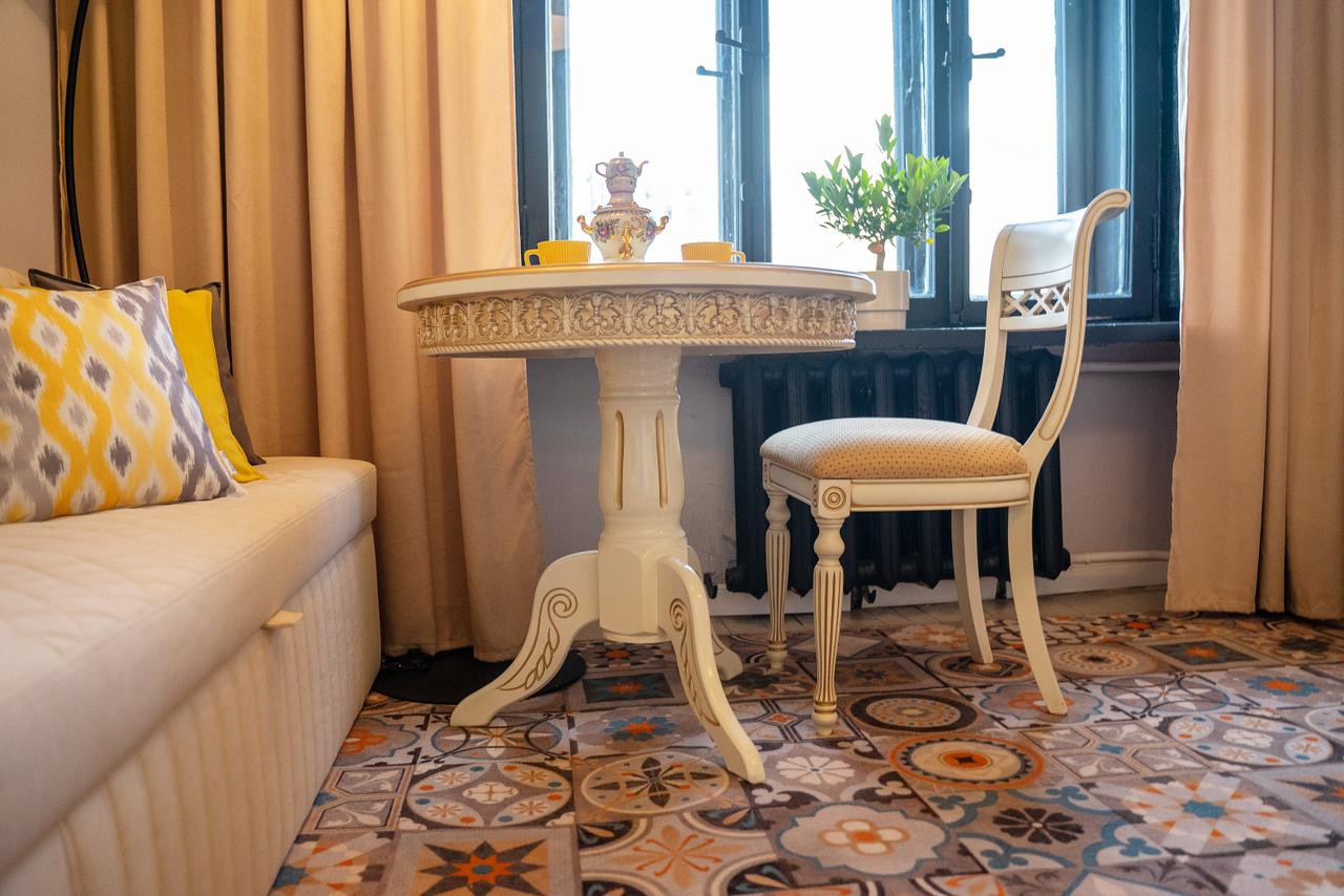Потолки 330 см. Общая площадь квартиры 100 м2. Толстые кирпичные стены. Лифт. Парковка во дворе под шлагбаумом, всегда есть свободные места.