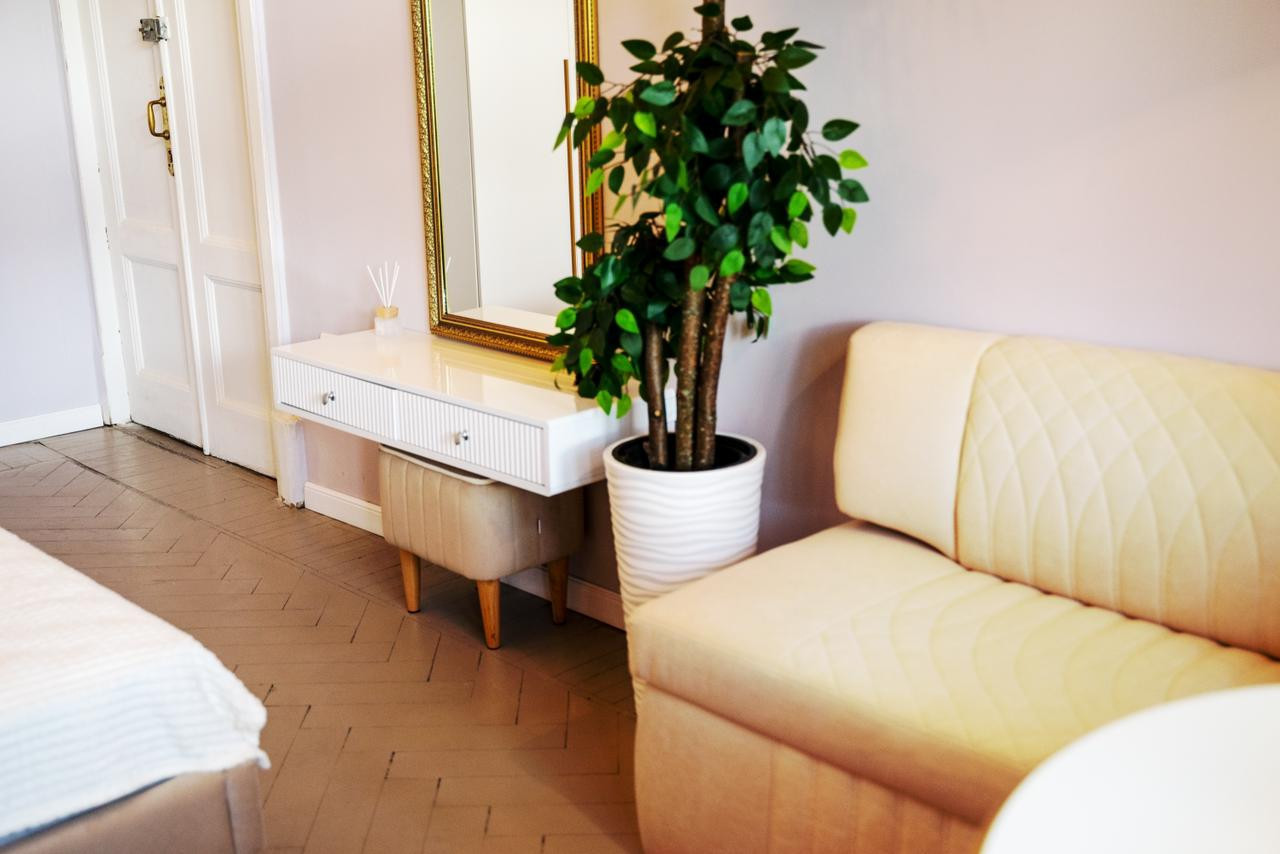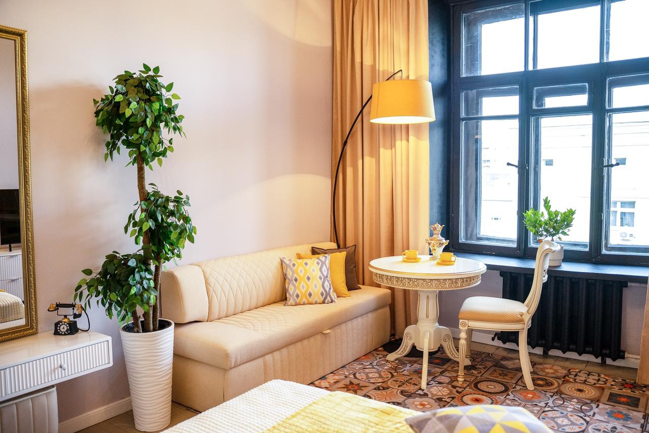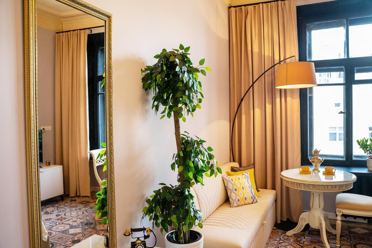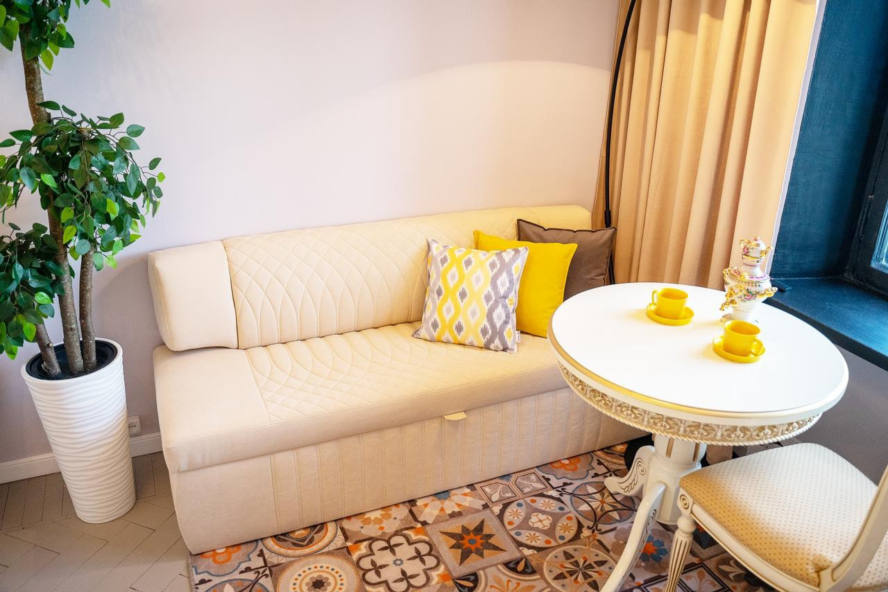 Потолки 330 см. Общая площадь квартиры 100 м2. Толстые кирпичные стены. Лифт. Парковка во дворе под шлагбаумом, всегда есть свободные места.