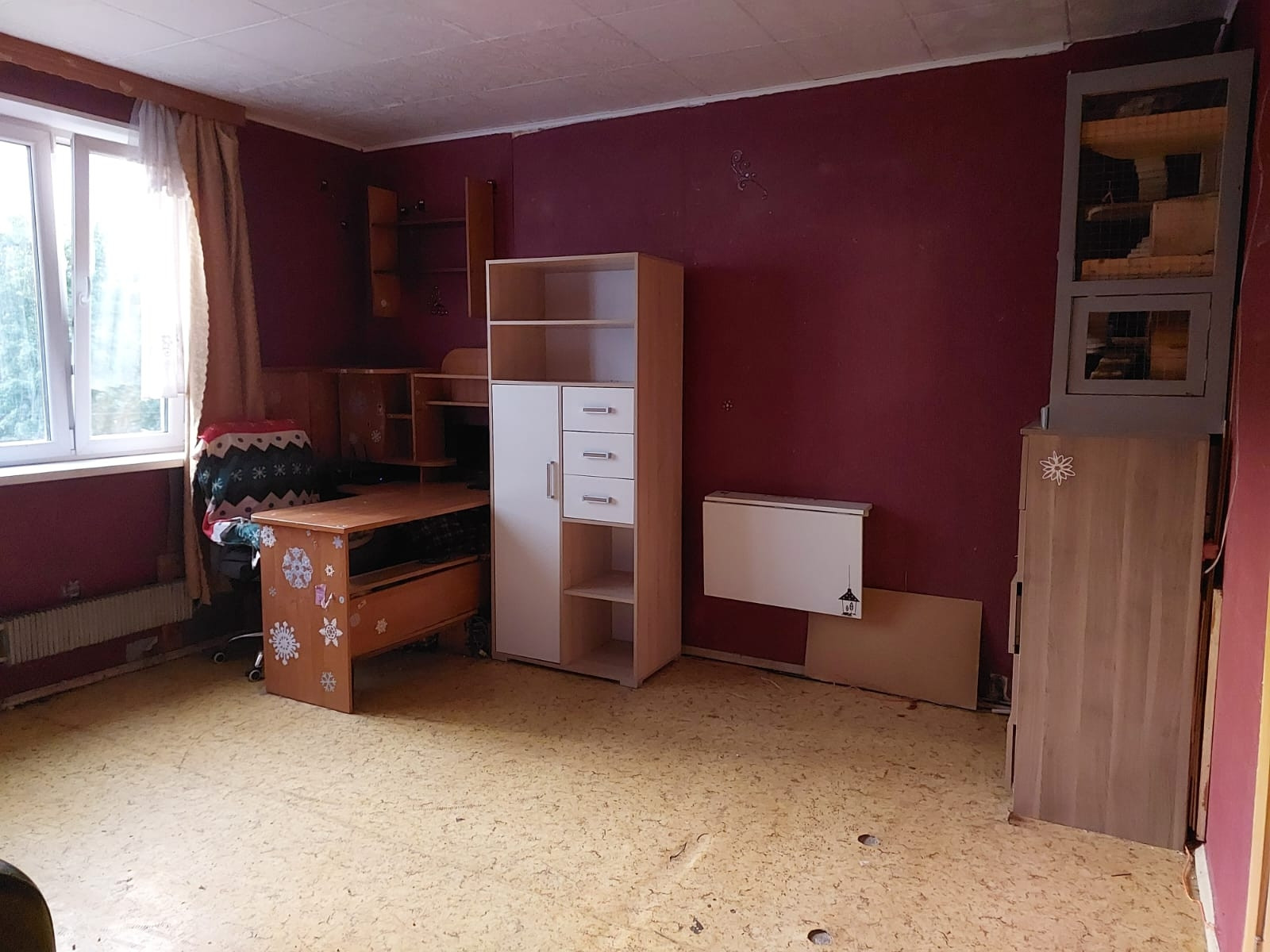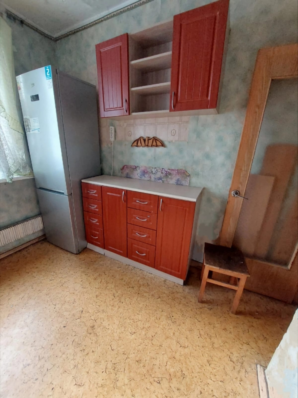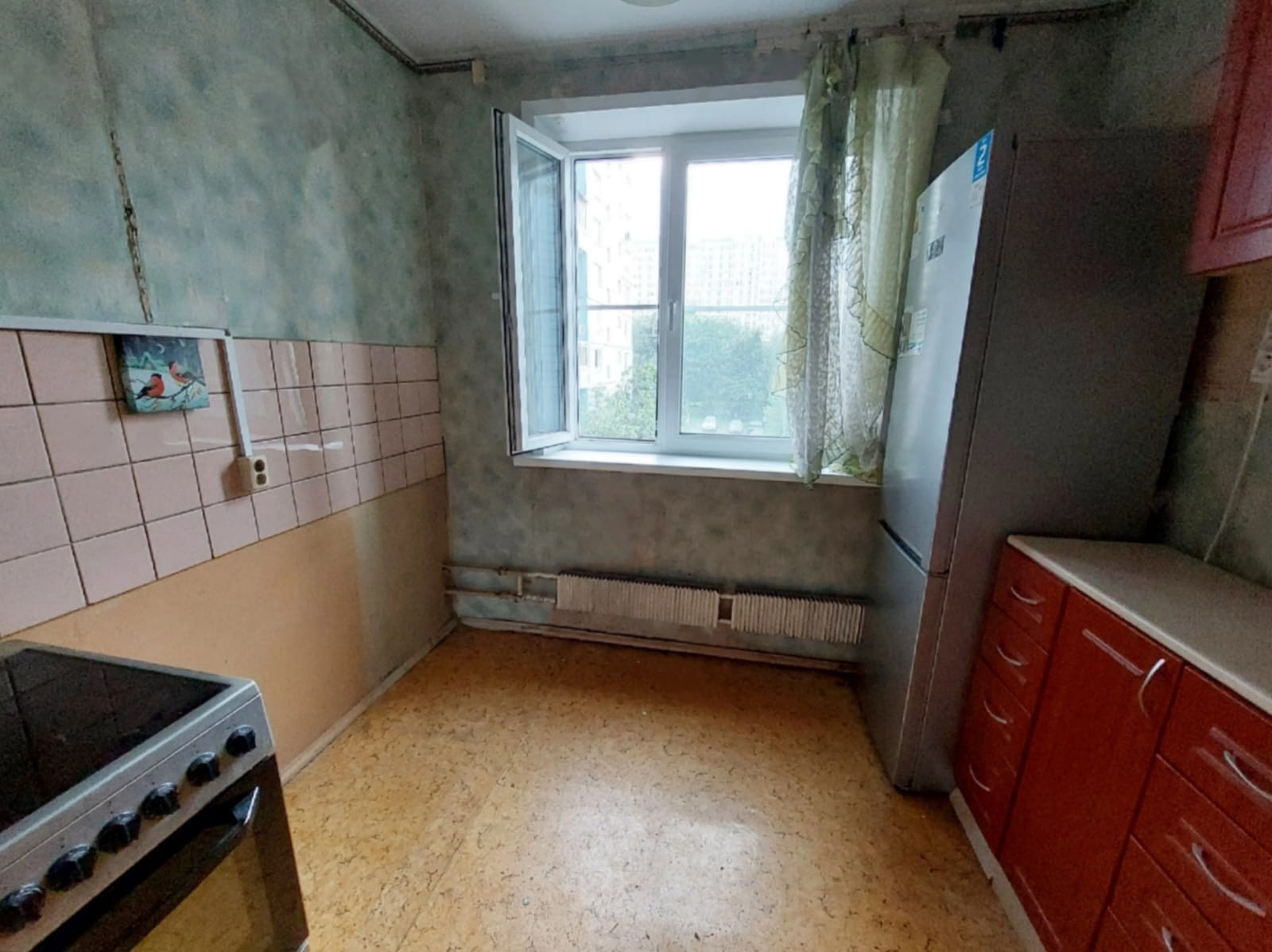 Отказ от преимущественного права покупки у сособственника получен. В комнате и кухне установлены новые стеклопакеты.