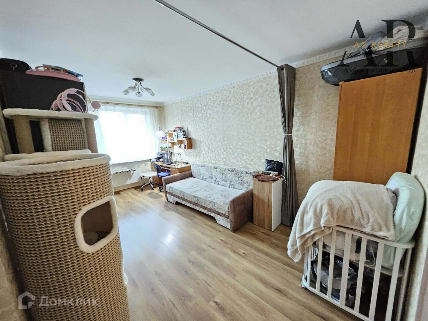 Площадь жилой комнаты составляет 20 м². Косметический ремонт выполнен с использованием качественных материалов, что позволяет новым владельцам сразу заселиться. Окна выходят на улицу, обеспечивая хорошее естественное освещение.