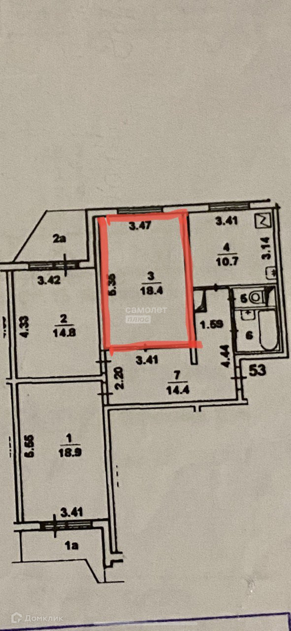 Жилая площадь 18.4 м2
