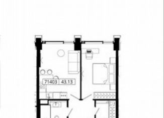 Общая площадь: 43.3 м2