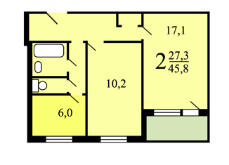 Общая площадь: 42.8 м2
