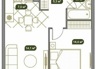 Общая площадь: 43 м2
