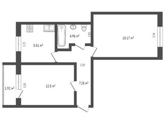 Общая площадь: 54.4 м2
