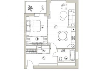 Общая площадь: 55 м2