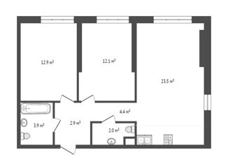 Общая площадь: 53.5 м2