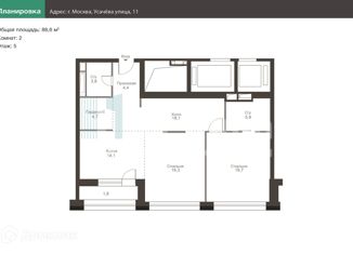 Продажа 2-комнатной квартиры, 88.6 м2, улица Усачёва, 15кБ