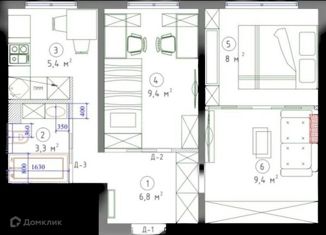 2-комнатная квартира на продажу, 44.1 м2, улица Кулакова, 8