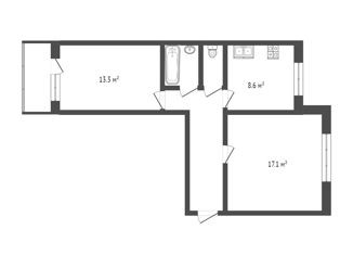 Общая площадь: 44.1 м2