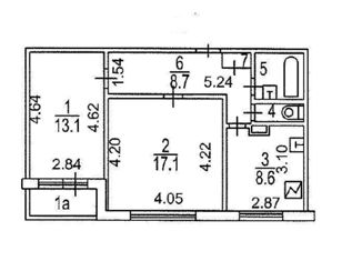 Общая площадь: 44.2 м2