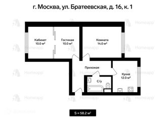Продажа двухкомнатной квартиры, 58.2 м2, Братеевская улица, 16к1
