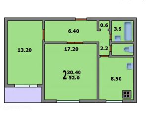 Общая площадь: 52.5 м2