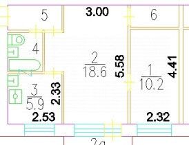 Общая площадь: 45.2 м2