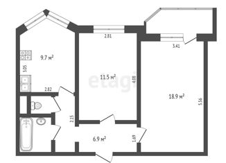 Общая площадь: 54 м2
