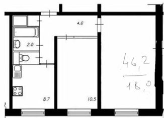 2-ком. квартира на продажу, 46 м2, улица Генерала Антонова, 5к2