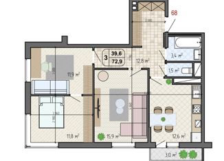 Жилая: 39.9 м2
