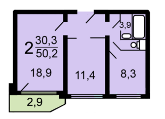 Общая площадь: 49.7 м2