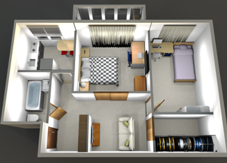 Общая площадь: 44 м2