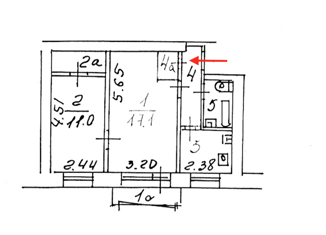 Общая площадь: 44.5 м2
