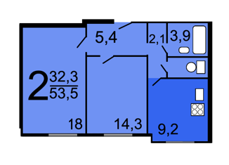 Общая площадь: 53.3 м2