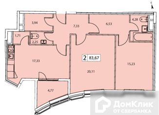 Продажа двухкомнатной квартиры, 85.92 м2, улица Врубеля, 4