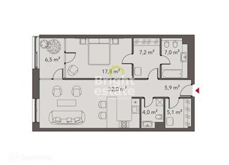 Общая площадь: 57.7 м2