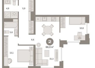 Общая площадь: 66.5 м2