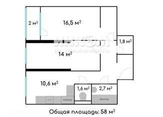 Общая площадь: 58 м2